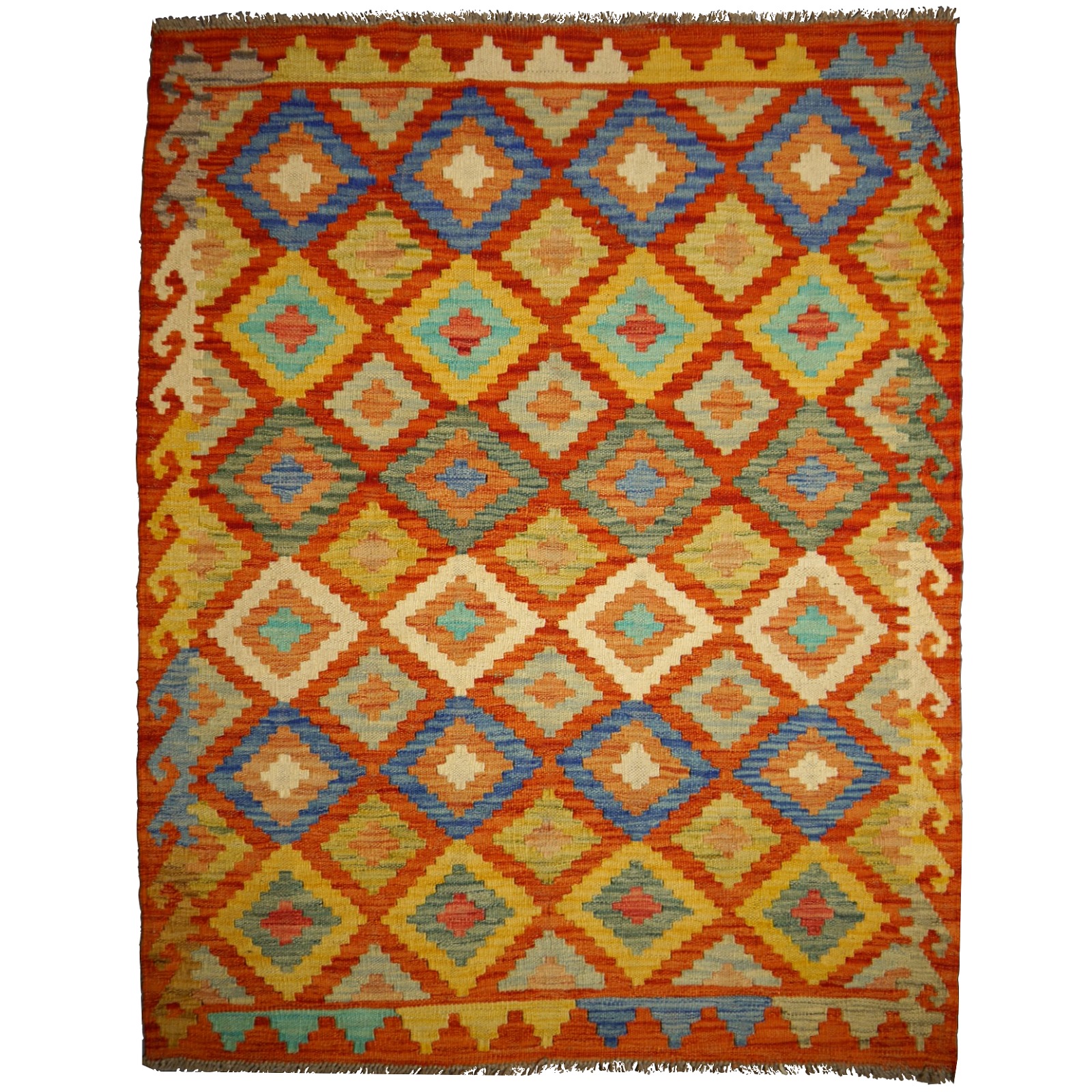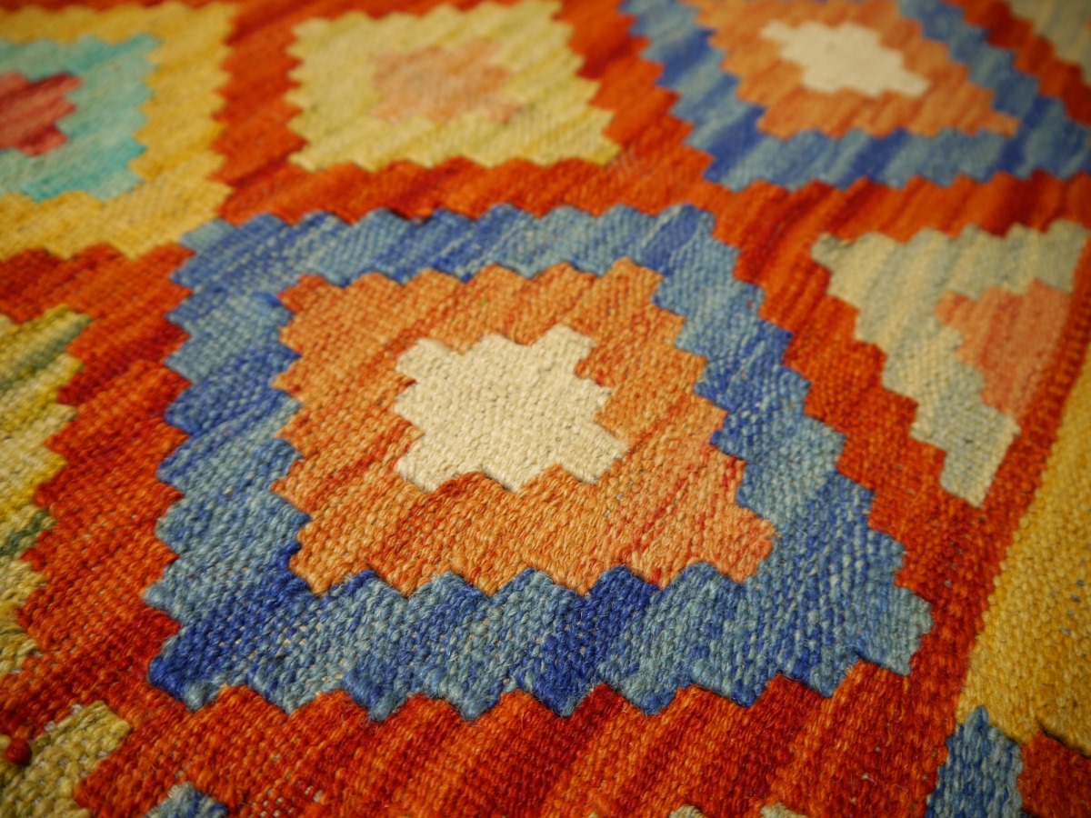 Kelim 140 x 104 cm Teppich handgewebt aus Wolle 100x150